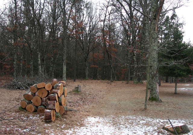 One of the ubiquitous firewood stacks found dotting the landscape in and around my parents place.