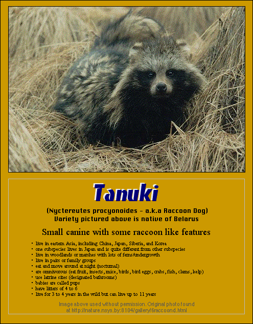 Note: Photo of Tanuki on this web page, and at the link referenced above are copyrighted material used without permission. Photos are used for educational, non-commerical illustration.